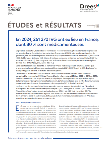 A. Vilain, J. Fresson, "Études et Résultats", Drees, n° 1350, septembre 2025, 8 p.